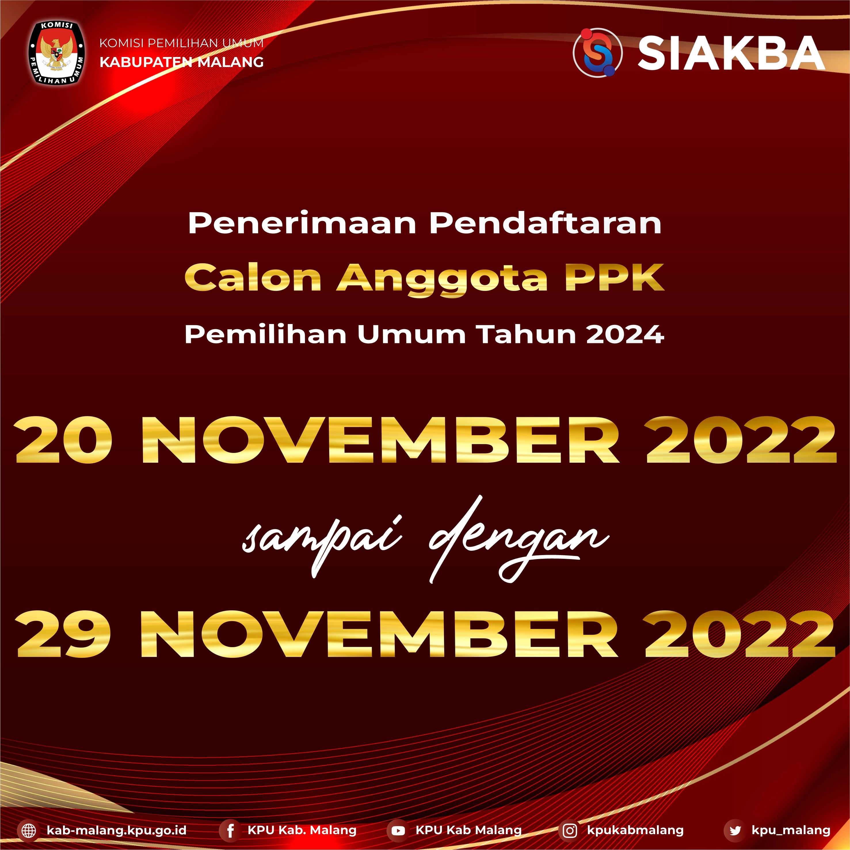 Surat Pendaftaran dan kelengkapan dokumen persyaratan disampaikan kepada KPU Kabupaten Malang sejak tanggal 20 November 2022 sampai dengan tanggal 29 November 2022 Pukul 16.00 WIB, melalui:
