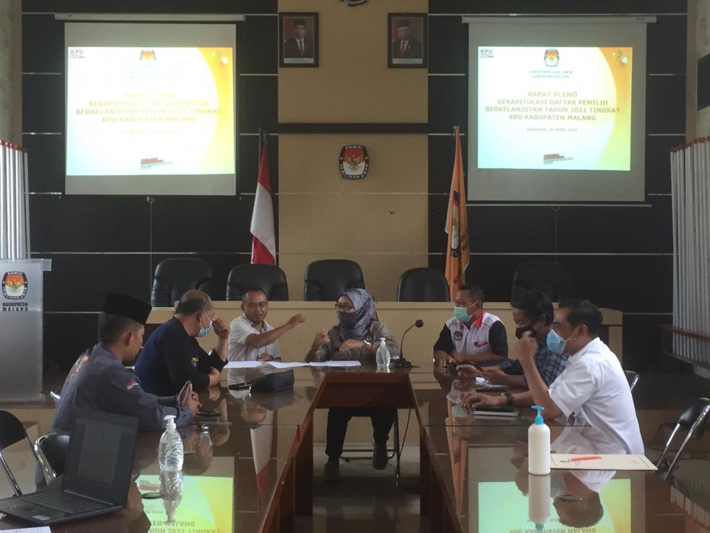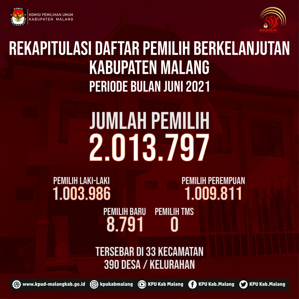 Kepanjen, KPU Kabupaten Malang berhasil menginvetarisir data pemilih sebanyak 8.791. Data ini dihasilkan dari koordinasi antara KPU Kabupaten Malang dengan Dinas Kependudukan dan Pencatatan Sipil (Dispendukcapil) Kabupaten Malang selama bulan Mei 2021. “Sebetulnya data yang didapatkan dari Dispendukcapil itu belasan ribu, namun setelah diolah dilakukan penyandingan dengan daftar pemilih berkelanjutan (DPB) bulan Mei 2021, hasilnya 8.791 ituâ€, ujar Khilmi Arif selaku Ketua Divisi Perencanaan, Data dan Informasi. (25/6/2021)Oleh karenanya, tegas Khilmi, KPU Kabupaten Malang menyampaikan banyak terimakasih kepada Dispendukcapil atas kerjasama, supportnya dalam proses pemutakhiran data pemilih berkelanjutan (PDPB) pada tahun 2021. Kerjasama ini semoga tetap berjalan dengan lancar dan saling memberi manfaat antar kedua lembaga. Di dalam proses PDPB ini, KPU Kabupaten Malang tidak hanya berkoordinasi dengan Dispenducapil, melainkan dengan seluruh stake holder tingkat daerah lainnya. Stake holder yang dimaksud adalah Bawaslu, Polres, Ajendam, Kemenag, Pengadilan Negeri dan seluruh partai politik (Parpol) di Kabupaten Malang. Kerjasama ini dimaksudkan dalam rangka mendapatkan masukan/tanggapan perihal data pemilih. Stake holder dapat memberikan masukan data pemilih baru, pemilih yang mengalami perubahan elemen data, pindah domisili, pemilih yang tidak memenuhi syarat (TMS) seperti meninggal, alih status dari sipil ke TNI/Polri dan sebagainya.Sebagaimana perintah perundang-undangan, KPU Kabupaten/Kota harus melaksanakan rapat pleno rekapitulasi daftar pemilih berkelanjutan (DPB) setiap bulan. Oleh karenanya, KPU Kabupaten Malang pada hari Jumat tanggal 25 Juni 2021 melakukan rapat pleno secara internal, yang dihadiri oleh semua Komisioner KPU dan Staf Sekretariat KPU Kabupaten Malang. Hasil rapat pleno rekapitulasi tersebut adalah terdapat data potensi pemilih baru sebanyak 8.791 dengan rincian laki-laki sebanyak 4.227 pemilih dan perempuan sebanyak 4.564 pemilih. Adapun DPB Bulan Mei sebanyak 2.005.006 pemilih. Dengan demikian total DPB bulan Juni 2021 ini sebanyak 2.013.797 dengan rincian laki-laki sebanyak 1.003.986 pemilih dan perempuan sebanyak 1.009.811 pemilih.Hasil rapat pleno rekapitulasi DPB telah tertuang dalam Berita Acara nomor: 208/TIK.04-BA/3507/KPU-Kab/VI/2021. Adapun byname by polling station DPB diumumkan di papan informasi KPU Kabupaten Malang.
