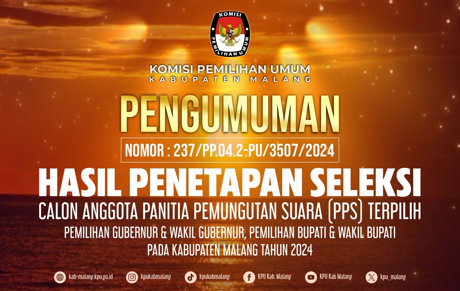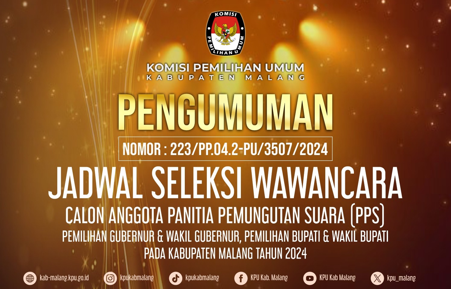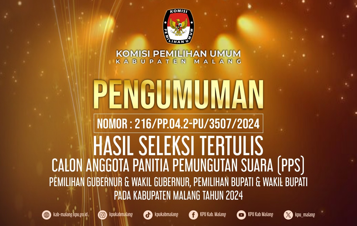 m. Pemenang lomba akan diumumkan di laman resmi dan media sosial KPU Kabupaten Malang dan dihubungi oleh KPU Kabupaten Malang;